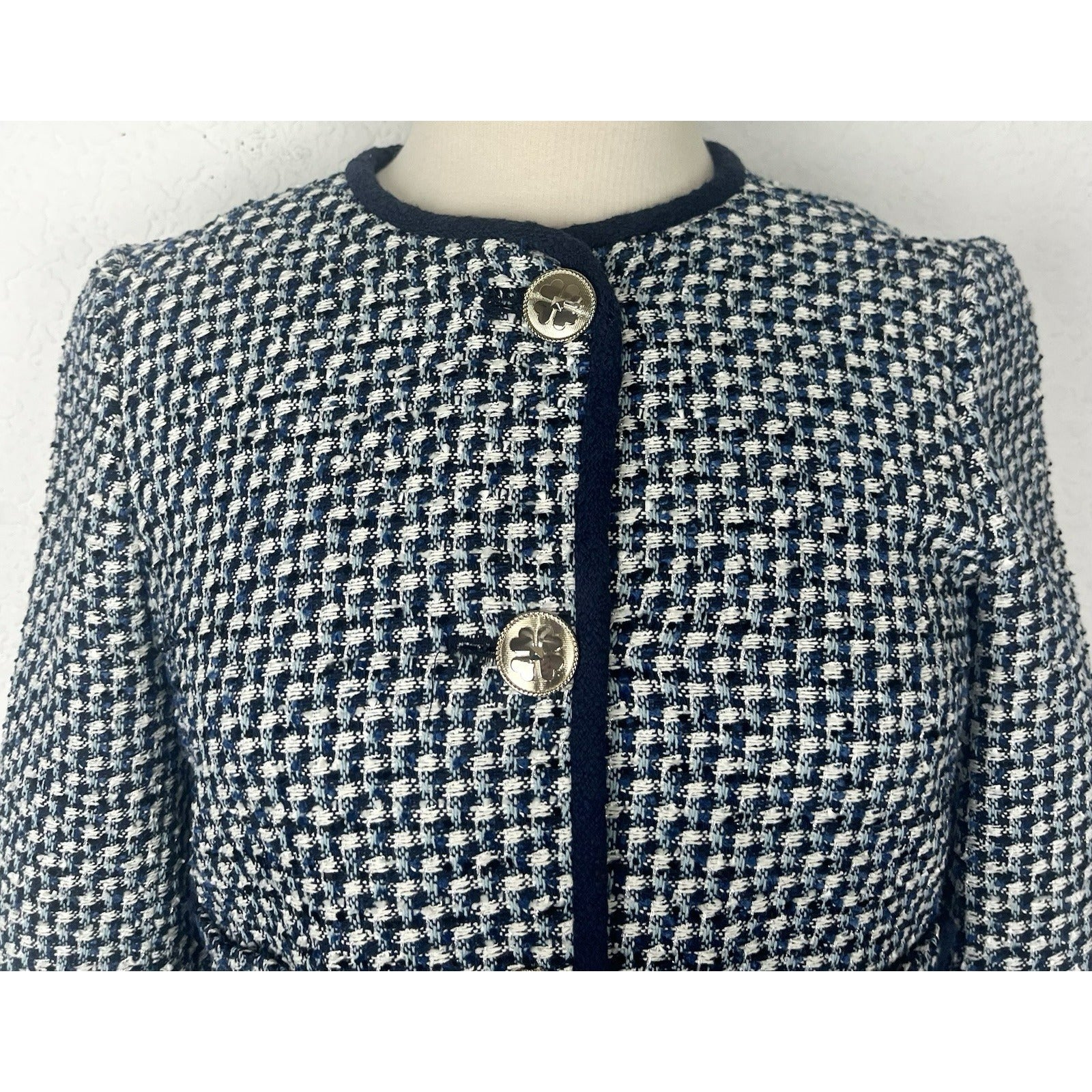 Kate Spade Nautical Tweed Blazer Jacket Blue And White Cotton Women’s Size 2