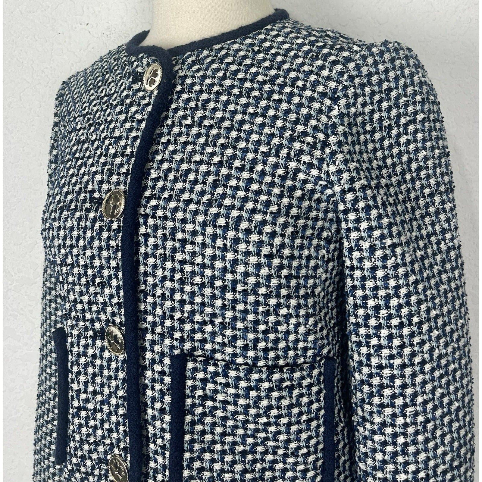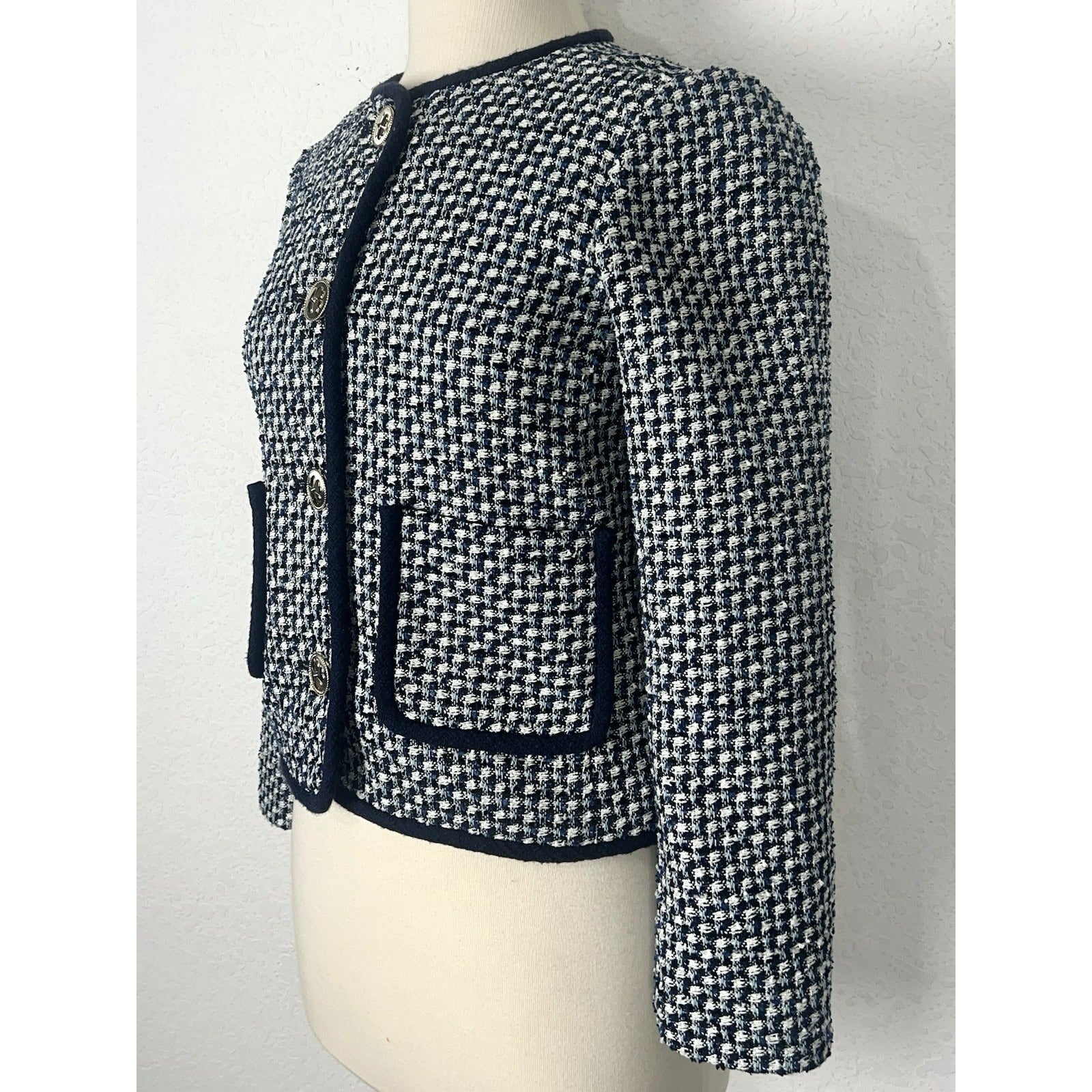 This is a great women’s blazer by Kate Spade New York in a size 2. This is noted online as the “Nautical Tweed Jacket” by Kate Spade.